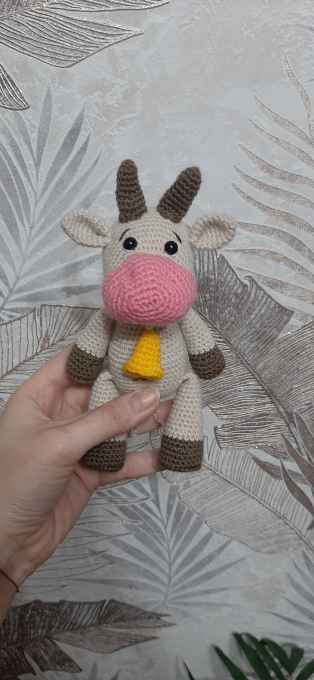 Игрушка ручной работы Бычок, связана из гипоаллергенной пряжи, глазки на безопасном креплении, высота игрушки 19 см. Отправляю Белпочтой, пересылка за мой счёт. Смотрите мои другие объявления, большой выбор игрушек.