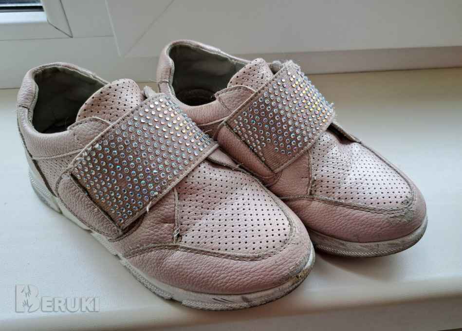 Туфли нежно-розовые со стразами на липучке, р.29 (стелька 19см), б.у в хорошем состоянии. Вышлю Белпочтой наложенным или по предоплате.