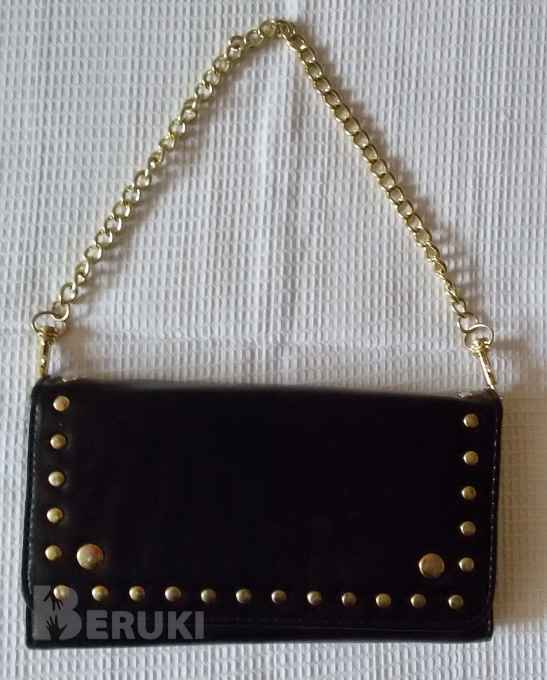 Сумка черная на кнопке и золотистой цепочке, новая, размеры 10,5см-19см, длина цепи-40см.