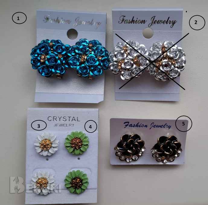 Серьги разные, новые, №1-15руб, №5-10руб, №3,4(гвоздики)-по 8руб. Вышлю Белпочтой наложенным или по предоплате.