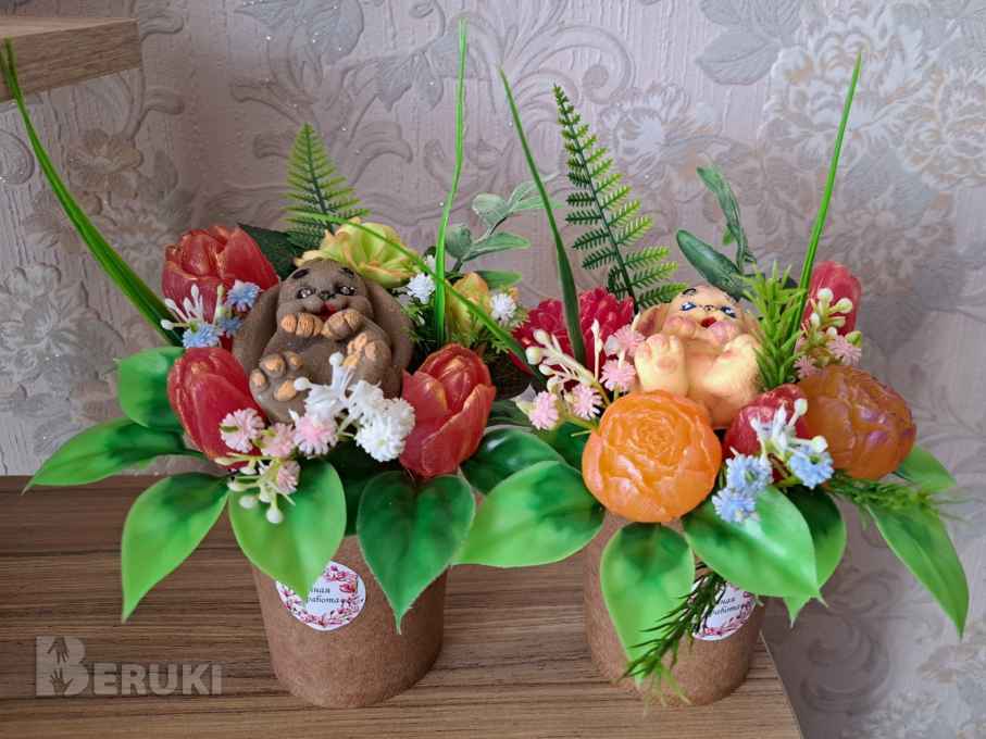 Букеты из мыльных цветов. Образцы на фото, могут отличаться немного.
