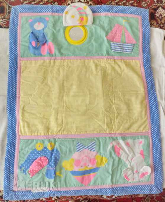 Развивающий коврик для малышей, с пищалкой и зеркальцем, размеры 85-65см, б/у. Вышлю Белпочтой наложенным или по предоплате.