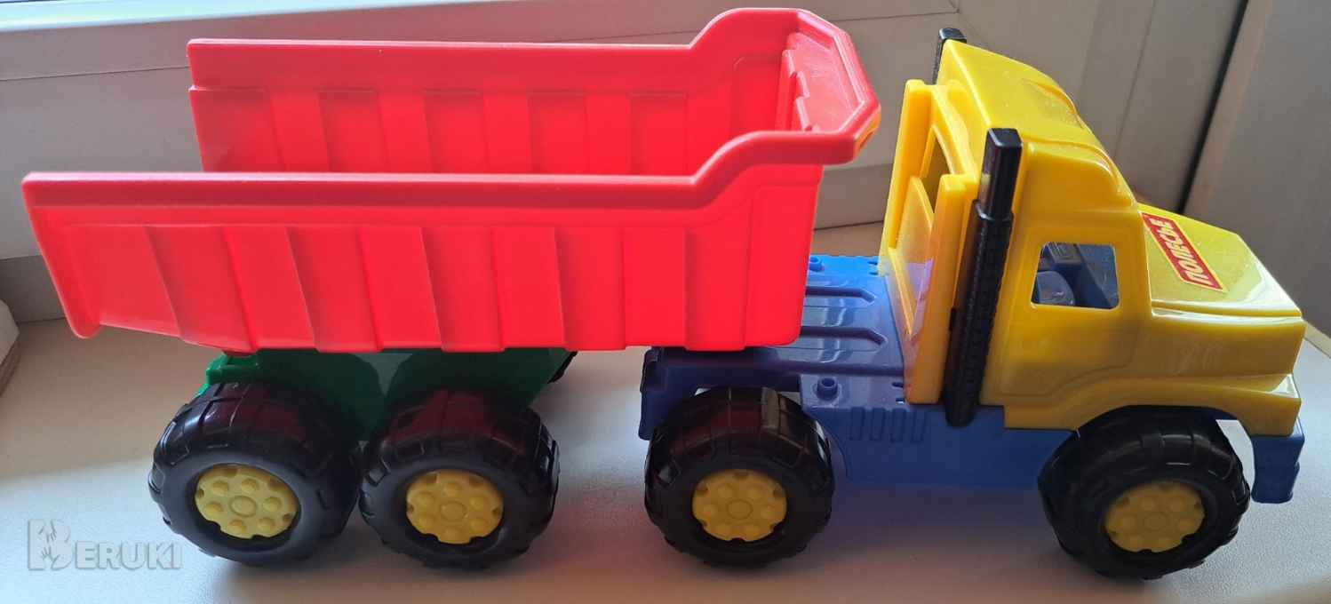 Грузовой автомобиль "FAVORIT" выполнен из высокопрочной пластмассы, Полесье, пролежал, не играли. Подвижные элементы: поднимается и опускается большой кузов, в котором можно перевозить предметы до места назначения. Модель хорошо детализирована, яркий тягач с имитацией выхлопных труб, яркими фарами, дисками, бамперами делают игрушку интересной и живой. В кабину можно посадить игрушечного водителя, придумывая новые игровые сюжеты. Большие устойчивые пластиковые колеса с рельефным рисунком позволяют преодолевать самые сложные препятствия, они надежно закреплены на металлических осях и справятся со сложными условиями на любой поверхности.