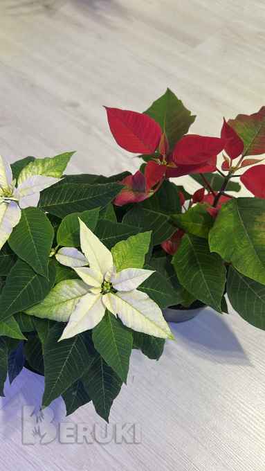 Пуансеттия двух цветов, очень актуально на подарок очень зима.