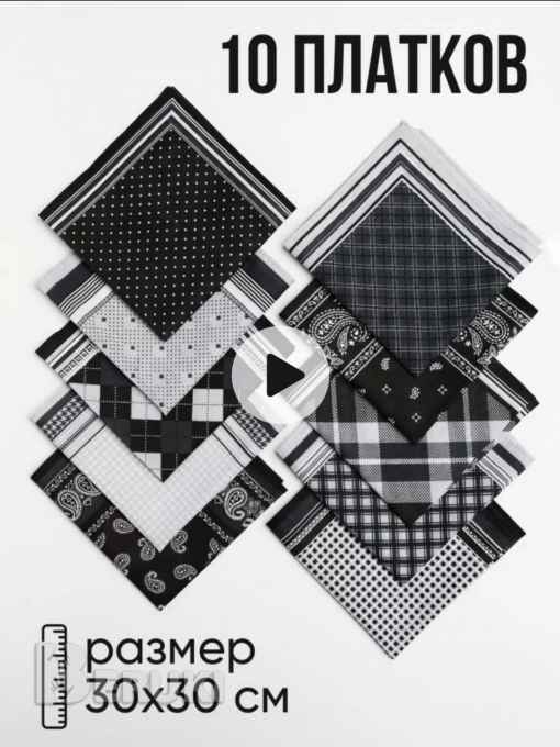 Носовые платки-10шт, новые. В комплект входит десять носовых платков (размер 30-30см) разных расцветок из 100% хлопка, отлично впитывают влагу и подходят как для ежедневного использования, так и для ношения в качестве яркого стильного аксессуара. Платки из хлопка экономичнее, чем бумажные. Вышлю Белпочтой наложенным или по предоплате.