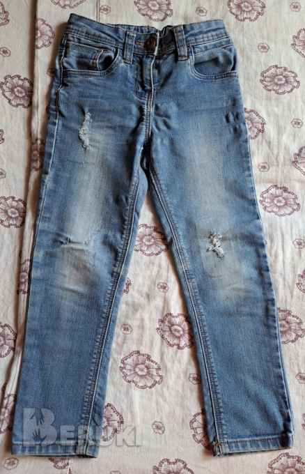 Джинсы синие на девочку 4-5лет (р.104-110см), б.у в отличном состоянии. Длина изделия-45см, полуобхват в бедрах-31.5см, длина шагового шва-36см. Вышлю Белпочтой наложенным или по предоплате.