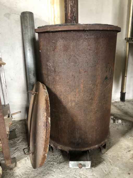 Печь отапливается опилками. Они загружаются в толстостенную бочку с двойными стенками, трамбуются и поджигаются снизу через задвижку, которая является и регулятором времени горения, и мощности нагрева. Средняя продолжительность горения одни сутки. Печь не дымит и не коптит. Обсолютна безопасна. Поджигаедся с первого раза, не капризна. Много лет верно отапливала цех, пока работали люди.
