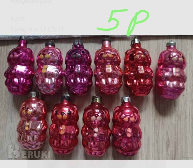 Продам новогодние ёлочные игрушки советского периода. В хорошем состоянии. Вышлю почтой по предоплате. Цены указаны на фото за 1 штуку.
