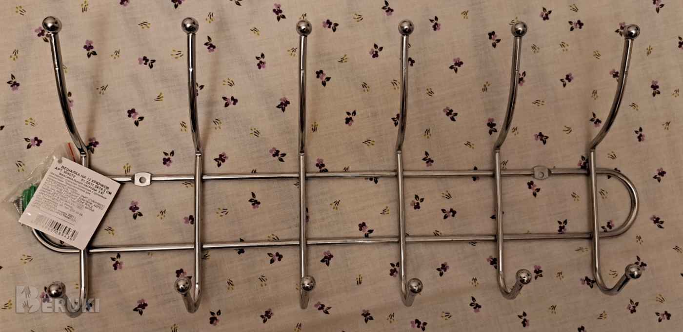 Вешалка на 12 крючков, новая, размеры 51.5-11.5-19.5см, максимальная нагрузка 5кг, материал- толстая стальная проволока с хромовым покрытием, предназначена для одежды.