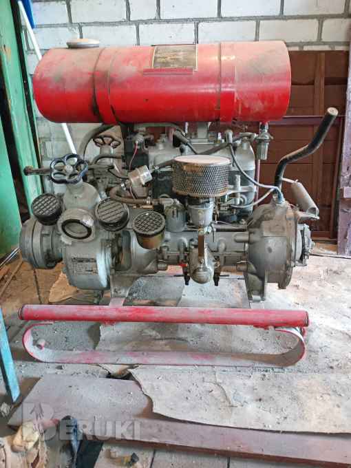 Пожарная бензиновая мотопомпа 1977 года выпуска в рабочем состоянии. Производство ГДР.Двухцилиндровый бензиновый двигатель мощностью 20 кВТ. Производительность 48 м3/час ( 13л/с), давление 8 атм. Всасывающий патрубок с пожарной соединительной головкой ф100, два напорных патрубка с соединительными головками ф65.
