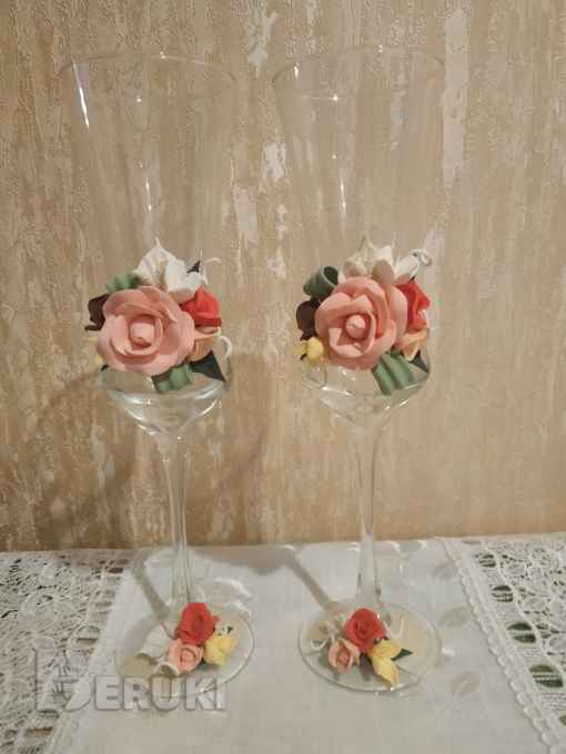 Бокалы стеклянные, украшение- цветочная лепка, объём 180 мл, 2 шт.