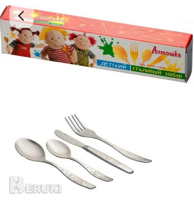 Столовые приборы Антошка, новые в коробке, не темнеют, нержавеющая сталь.