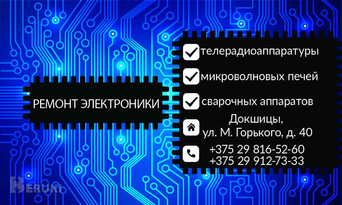 При отсутствии возможности доставки оборудования предусмотрен выезд для забора техники с последующей доставкой после ремонта. Обслуживание осуществляется в г. Докшицы, Докшицком районе и близлежащих населенных пунктах.