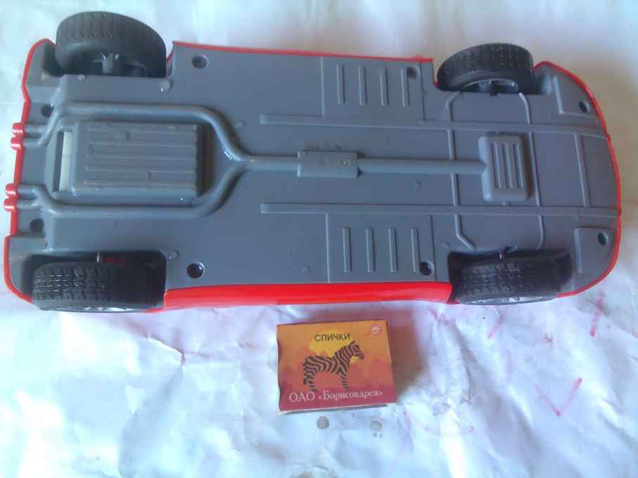 Детский автомобиль. Игрушка в хорошем состоянии, но была в аварии (столкновение с другой игрушкой).
