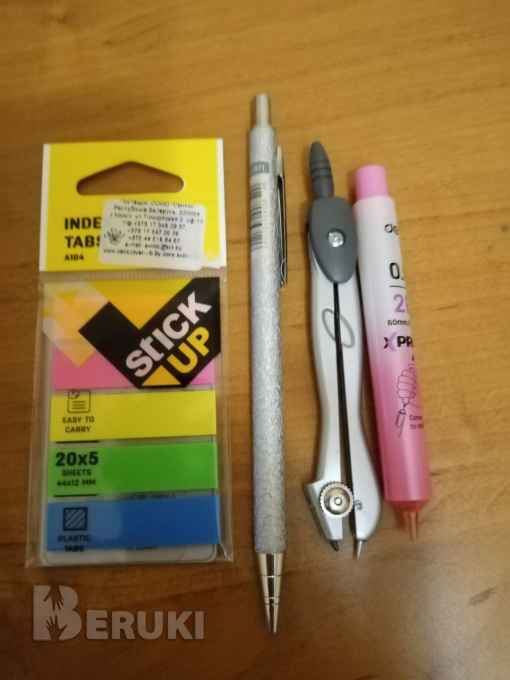 Циркуль = 11,00 рубЗакладки клейкие = 3,00 рубКарандаш механический = 6,00 руб.Гуашь карамельная 16 цветов = 10,00 руб.Не пригодилось в учебном году.По вопросам пишите в ЛС.