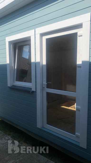 Покраска снаружи и обработка древесины: Краска водно-дисперсионная акриловая Капарол Хольцшутцфарбе ПроБаза 1, белая; Паста колеровочная Caparol UniColor: Pro 71 Dunkelblau;Pro 74 Dunkelblau; Pro 90 Schwarz; Сенеж Экобио - антисептик для древесины;