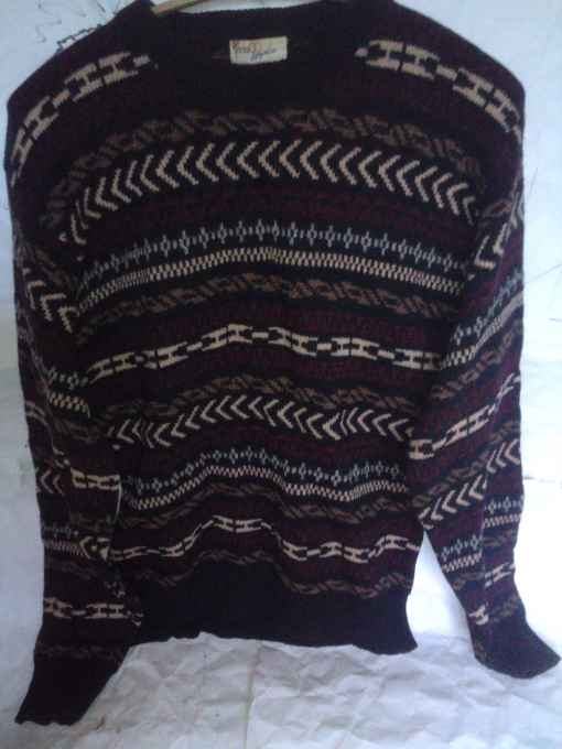 Шерстяной свитер разноцветный с преобладанием коричневого цвета. Есть потёртости.