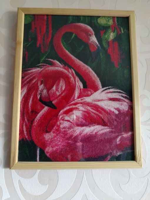 Картина, вышивка, мулине, крест, рамка, стекло, р-р 33х43,,, Фламинго "
