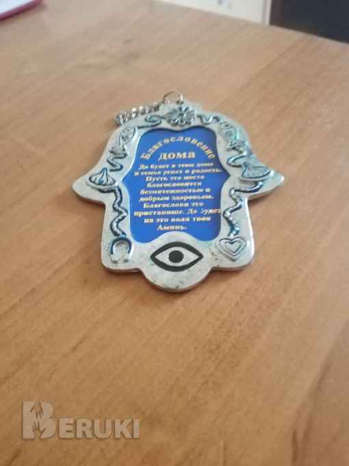 Амулет для дома, машины. Привезён из Израиля.Амулет, как оберег присутствует как в еврейской, так и в мусульманской культурах. Глаз в амулете обычно синего цвета. Считается, что именно этот цвет действует магически, защищает от сглаза.Оберег с написанным благословением вешают у входа в дом для защиты жилища.Самый древний и сильный защитный амулет.По большому счету, дома мы там, где нас любят и ждут. Чтобы место, в котором мы живем, стало настоящим домом, за него нужно искренно и часто молиться, и самому, и с теми, кто живет вместе с нами. Произносить можно разные молитвы, но важно просить Божьего благословения. В одной из часто читаемых молитв есть такие слова “Благослови это пристанище”.Пусть Бог посылает в ваш дом милость и мир.По всем вопросам пишите в ЛС. Посмотреть и приобрести можно в р-не Волотова.Отправлю любой почтой.