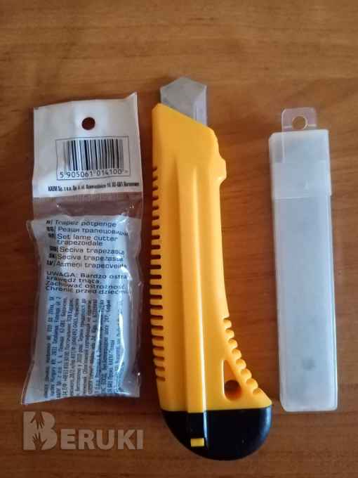 Новый универсальный нож для строительного и канцелярского предназначения. Тяжелый . В комплекте 5 дополнительных трапецеидальных лезвий, набор из 4 лезвий размеры : 100*18 мм.За все 20,00 руб.