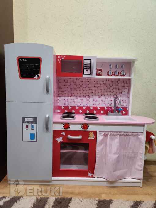 Состояние новой. Без повреждений.Высота кухни 102 см.Для детей.Материал изготовления: дерево.Размер 112*30*102 см.Вес 19 кг.Составляющие элементы игровой кухни:холодильник,микроволновая печь,плита с 2-мя конфорками,раковина с краном,полочки.Все открывается и закрывается.Здесь есть все необходимое для интересной сюжетно-ролевой игры.