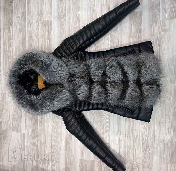 Натуральная кожа. Мех чернабурка( мех не отстегивается) рука и капюшон отстегиваются. В идеальном состоянии. На худенькую девушку
