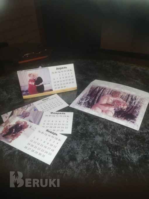 Календарики из высококачественной фото бумаги ,высокой плотности ,с глянцевой поверхностью.В комплект входит 12 листиков с фото и месяцем плюс деревянная подставка .На конверте нанесено фото в художественной обработки.Цену считаем 5 рублей 1 лист бумаги А4.Календарик 18 рублей конверт 5 рублей.