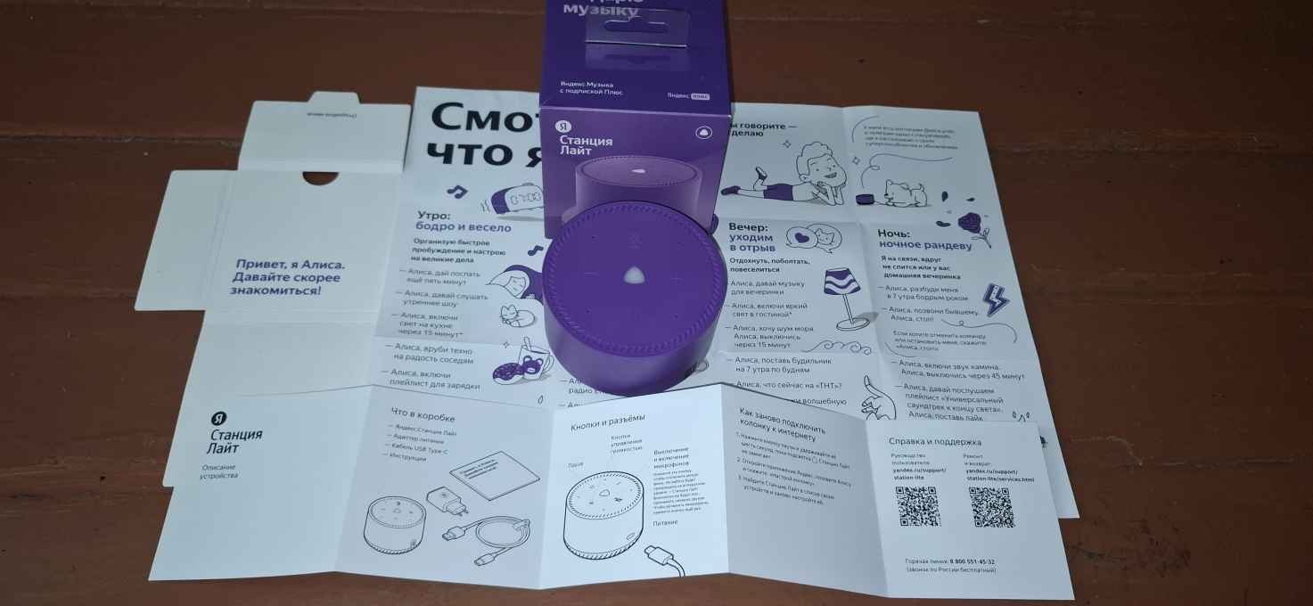 Идеальное состояние. Умная колонка как для дома, так и для общения и узнавания новостей, истории и интересных неизвестных фактов. Можно использовать как портативную колонку. Единственный минус - нет зарядки. Используется обычный USB Type-C.