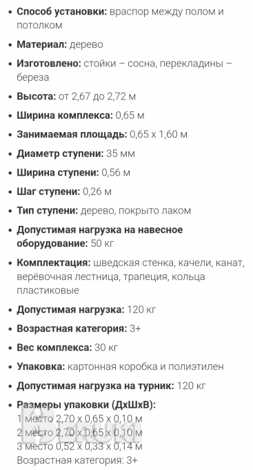 Детский спортивный комплекс. Комплект: ДВЕ лестницы высотой по 2.6м, две перекладины, лесенка, трапеция, канат, кольца, качелька, Монтировался в помещение высотой 2.72м.
