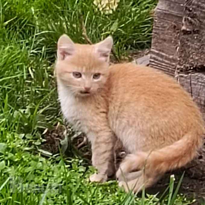 Котенок дикий, возраст примерно 3 месяца. Пока приучаю к общению. Очень осторожно идет на контакт. Рыженький. Умные глазки.