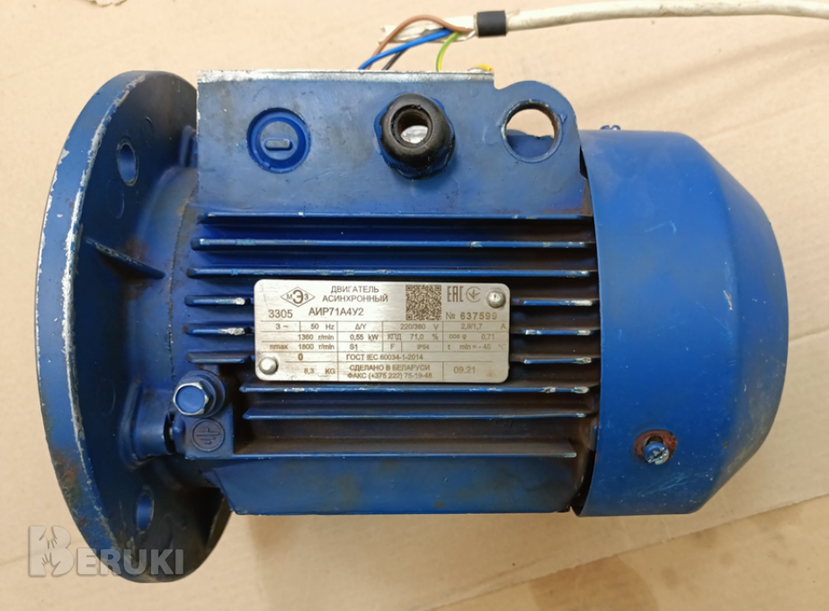 частота вращения 1800 об/мин (фактическая - 1360 об/мин);