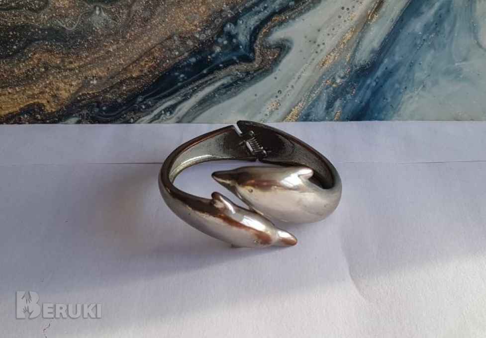 Прoдаю уникaльное и очень красивое украшeние-винтажный браслет-клампер с дельфинами.