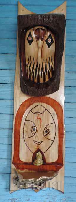 комбинированное изделие из дерева (бук, яблоня, нарост березы - "гриб - - с отрытой и закрытой полкой....
