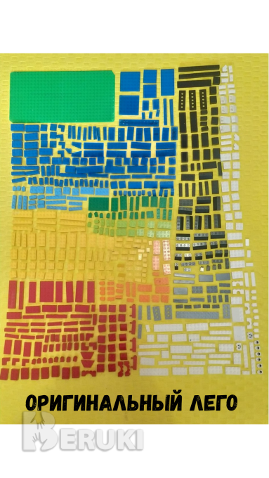 Всего 3336 деталей (примерно). Лего состоит из следующих наборов: 3114, 3413, 3414, 42197, 5508, и примерно ещё 5 неоригинальных наборов. Лего общим весом 4,4 кг: 15% лего техник (525 деталей), оригинал, хорошее качество, из особенностей: два механических мотора и много колёс. 25% обычного лега (888 деталей), оригинал (среднее качество), из особенностей: большая зелёная платформа с пинами. 60% неоригинального обычного лега (1823 деталей) (среднее качество), из особенностей: много длинных деталей, гладких деталей без пинов и платформ, в основном чёрные и серые цвета.