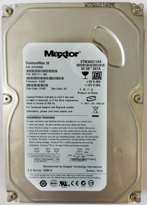 DiamondMax 21, STM3160815AS Размеры (ШхВхД):101.6x20.99x147 ммS\N: 6RA2X9KYP\N: 9DS132-327 Общие характеристики Тип:HDD Назначение: для настольного компьютера Форм-фактор HDD:3.5" Характеристики накопителя Объем:160 GB* SATA