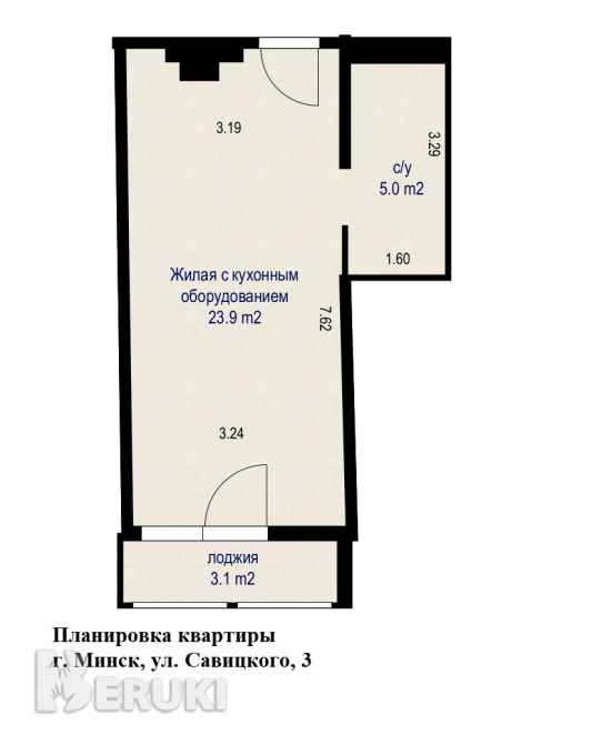 Студия с эргономичной планировкой в современном и перспективном районе г. Минска. Общая площадь – 28.9 м.кв. (по СНБ 31.1 м. кв.), жилая 23.9 м. кв.