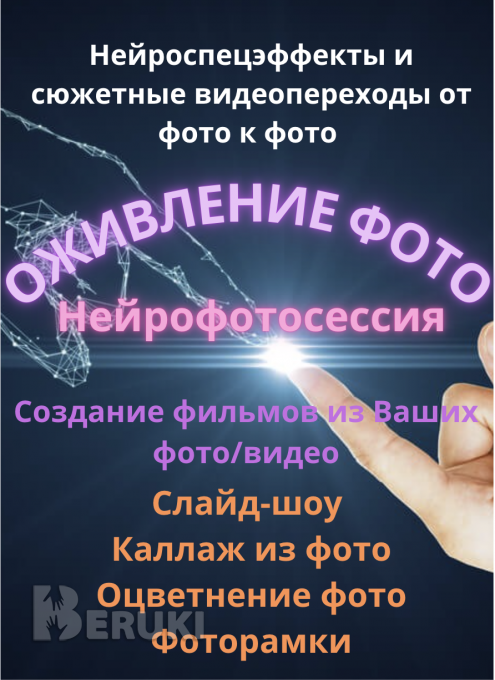 Подарите самым близким настоящее волшебство! ИХ ОЖИВШИЕ ФОТОГРАФИИ В ТРОГАТЕЛЬНОМ ФИЛЬМЕ-ПОЗДРАВЛЕНИИ!!!______Пишите - скину ПРИМЕРЫ моих работ!!!*******Забудьте о стандартных открытках и обычных подарках! Подарок — это эмоция, которая остается в сердце навсегда. Я помогу вам создать именно такое, по-настоящему драгоценное и незабываемое чудо для ваших родных и любимых. Ведь они заслуживают самых трогательных подарков. Я помогу вам оживить драгоценные воспоминания. Мы превратим старые фотографии из вашего семейного архива в волшебное видео, где дорогие люди улыбнутся, подмигнут, пройдутся и словно оживут на экране. Это не просто видео, это путешествие во времени, это эмоции, которые невозможно передать словами. Идеально для дня рождения, юбилея, свадьбы, любого торжества, корпоративного события, годовщины, памятной даты или просто чтобы сказать самое важное: "Я тебя люблю".*******КАК ЭТО РАБОТАЕТ:1) Мы согласовываем с Вами все сопутствующие вопросы, определяем стилистику, формат, музыкальное и текстовое сопровождение. Вы отбираете и высылаете мне сфотографированные (либо отсканированные) изображения в нужном хронологическом порядке2) При помощи различных инструментов анимирования искусственного интеллекта я "оживляю ваши фотографии", превращая их в шокирующие своим реализмом 5-секундные видео.3) Далее я монтирую все ожившие кадры в гармоничный, цельный фильм с красивыми переходами, эффектами и оговоренным с Вами музыкальным и текстовым сопровождением.*******СТОИМОСТЬ УСЛУГИ:- Цена каждой оживленной фотографии - 5 рублей.- Итоговый монтаж в единый видеофильм - 40 рублей.Соответственно:(количество фотографий) х 6 руб + 40 руб = итоговая цена*******СРОКИ ИСПОЛНЕНИЯ:Всё зависит от текущей загруженности. Поэтому настоятельно прошу обращаться если в запасе есть КАК МИНИМУМ НЕДЕЛЯ!!! Если нужно срочно раньше - уточняйте по факту.*******Это больше, чем услуга. Это возможность сказать самое главное без единого слова. Дарите не вещь, дарите воспоминания, которые оживают!!!_______И помните: современные нейросети это ещё не панацея, это лишь хороший инструмент! Поэтому фотографии и видео, обработанные нейросетью, могут нести незначительные изменения в чертах внешнего вида. Всё индивидуально. Чем лучше и качественнее исходные фотографии, тем бОльшая приближенность к оригиналу в работе нейросети. ****************Теги для поиска:нейросеть, ИИ, искусственный интеллект, фотосессия, нейрофотосессия, генерация изображений, фоторедактирование, фотосессия с нейросею, слайд-шоу, коллаж, оживление фотографий, оцветнение фото, окрашивание, черно-белое фото, цветное фото, накладываение музыки, аудио, монтаж ролика, видеомонтаж фильма, поздравительный видеоролик, поздравительный фильм, фильм из фотографий в подарок, превращение фото в видео, видео со спецэффектами, видеопереход, видео из фото, обними себя, обними друг друга, фоторамки, рамки для фотографий, эффекты нейросети, юбилей, 8 марта, новый год, день рождения, рождество, пасха, крестины, свадьба, поминки, выпускной, корпоратив, подарок, годовщина, памятная дата, торжество, подарок родным