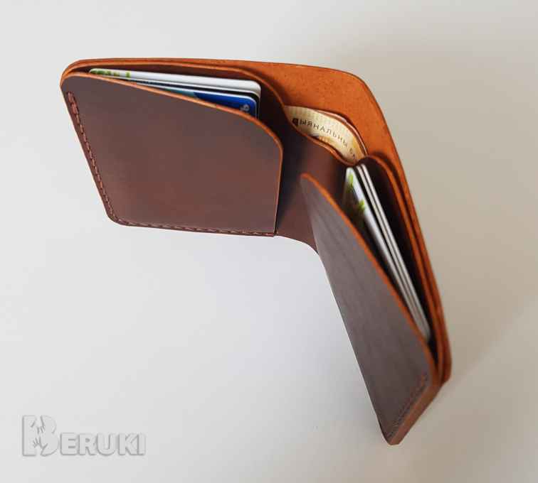 Кошелёк ручной работы. Изготовлен из натуральной кожи хромового дубления. Имеет отдел для купюр и два отдела под карты.