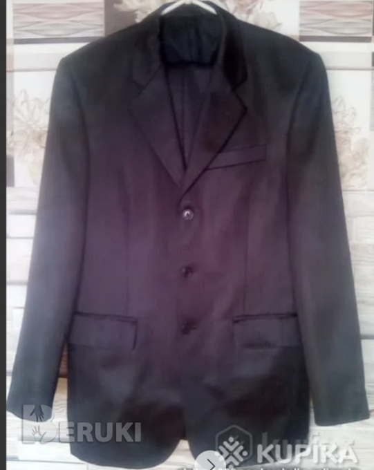 Стильный костюм в отличном состоянии.Цвет тёмный перламутр в мелкую полоску.Б.у один день.На рост 48/180см.Пиджак длинна.85см,плечи 48,рукав 65.Брюки длинна 110. талия полуобхват 40Вышлю почтой