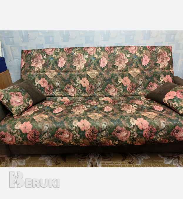 Диван в отличном состоянии. Параметры - смотрите фото. Куплен около 3 лет назад. Стоял в комнате. Раскладывался редко. Невероятная расцветка. Дорогая ткань под заказ. Кроме ножек установлены колесики для лучшего передвижения по полу. Покупался за 1800 бел.руб.