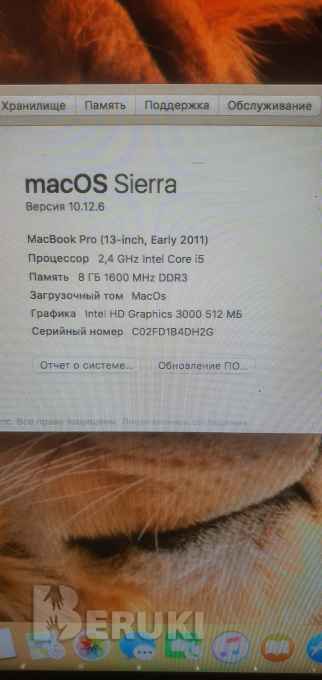 MacBook Pro 13 (mid 2011) A1278Оперативка: 8 GB 1600 MHz DDR3Процессор: Intel Core i5, 4 лог ядра, 2.4 GHzВидеокарта: Intel HD GraphicsДиск: 750GbКомплект: макбук + зарядка. В целом неплохое состояние, все работает, есть потертости на днище,подсветка клавиатуры