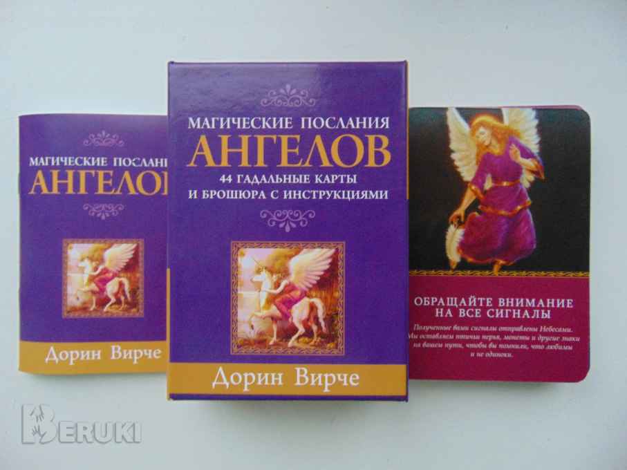 44 карты, инструкция.А вы знали, что у каждого из нас есть ангел-хранитель, который оберегает нас от всех напастей и в трудные минуты призывает других ангелов нам на помощь? Эти прекрасные существа в любой момент готовы помочь вам в решении больших и малых проблем. Они только и ждут, чтобы вы дали им задание! Вы не знаете, как к ним обратиться? Специально для этого ясновидящая Дорин Вирче создала свои уникальные наборы карт, благодаря которым вы каждый день сможете получать подсказки, предостережения и добрые советы от ангелов. Приятного вам общения!