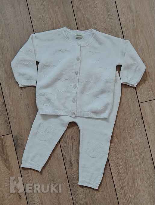 Трикотажный комплект для девочки в отличном состоянии! По маркировке 74см. Штанишки не растянуты, коленки не вытянуты. Манжетики все целенькие, плотненькие. Ни единого пятнышка нет!