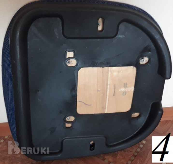 4- сиденье, ткань чистая голубая/синяя (без пятен), все 6 крепежные гайки имеются (внутри обивки), фанера и пластик целые, размер примерно 46 на 46 см. Цена 15 рб.
