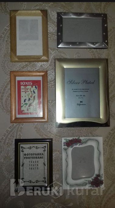 Рамки для фото 5шт. в хорошем состоянии 10*15 - 4шт. (дерево коричневого -2, металл серебристого - 1, пластик черного - 1, керамика светлого-1)13*18 -1шт. (металл серебристого