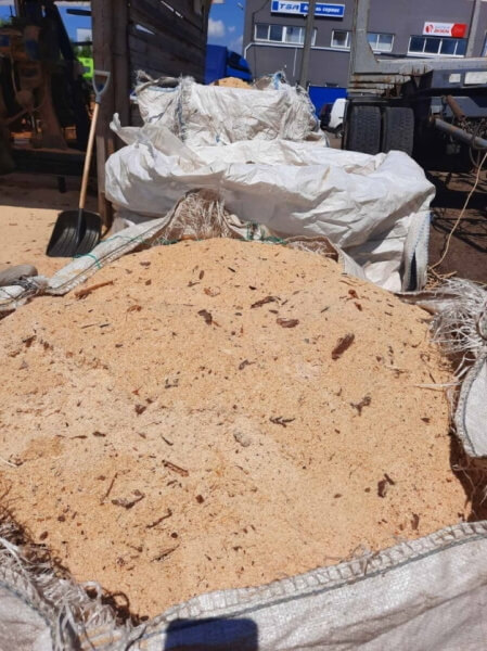 Опилки из-под ленточнопильного станка. Опилки объёмами от мешка=0,22м3 до FIBC больших мешков для массовых тонн строительных материалов. Опилки от 3р. +НДС (20%) за "картофельный" мешок. Пром.зона Колядичи. Погрузка больших мешков производится манипулятором.