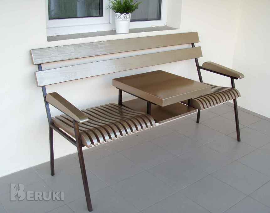 Скамейка (собственное производство) изготовлена из металлического профиля и натурального дерева. Криволинейная форма сидений создают комфорт и удобство. Размеры: длина 150 см, глубина 62 см, высота 82 см; сиденье: 50х45 см, высота - 44 см, столешница 40х50 см. Цвет любой!