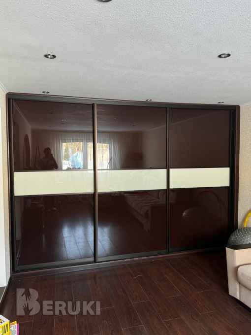 Продается вместительный шикарный шкаф-купе. В превосходном состоянии. Три двери, размер каждой 123*225, крашеное стекло цвет RAL 8019. По центру шкафа зеркало с косметическим столиком. выведена подсветка. Самовывоз 5 км от МКАД в сторону Гатово. Возможен торг.