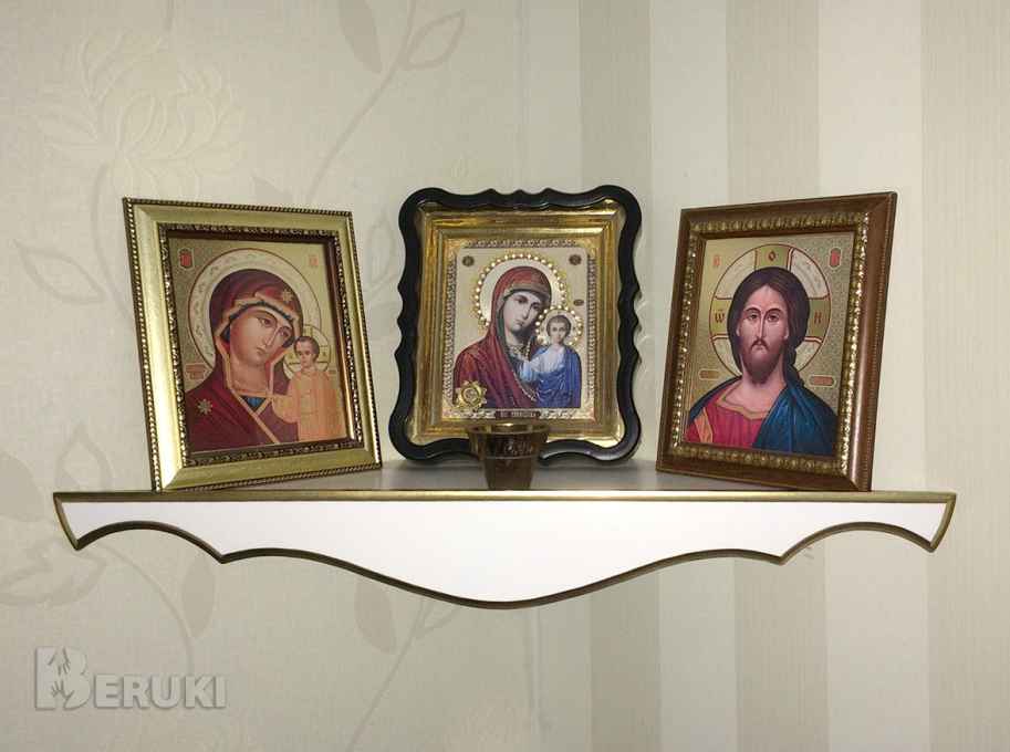 Полка настенная (собственное производство )изготовлена из МДФ. Размеры: 46х46х65 см, глубина 32 см, высота 9 см. Указана стоимость изделия без крестика и золотой отделки. Полка с крестиком на 4 рубля дороже! Позолота - плюс 8 руб. С декоративной накладкой (последнее фото) дороже.