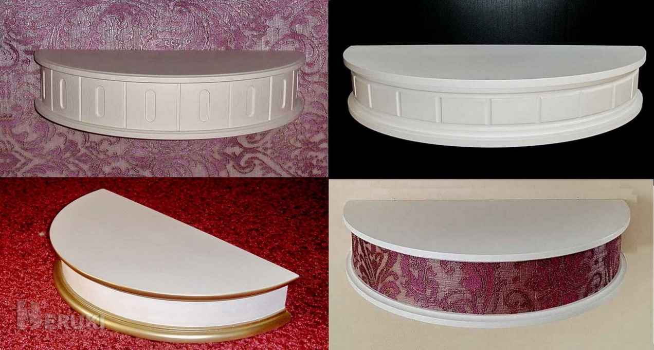 Полка (собственное производство) изготовлена из МДФ, загрунтована и окрашена. Размеры: длина 30 см, глубина 15 см, высота 6 см. Указана цена полки без резьбы и позолоты! С резьбой на 10 руб. дороже. Позолота - плюс 10 рублей. Диаметр круга можно увеличить до 40 см - плюс 15 руб.
